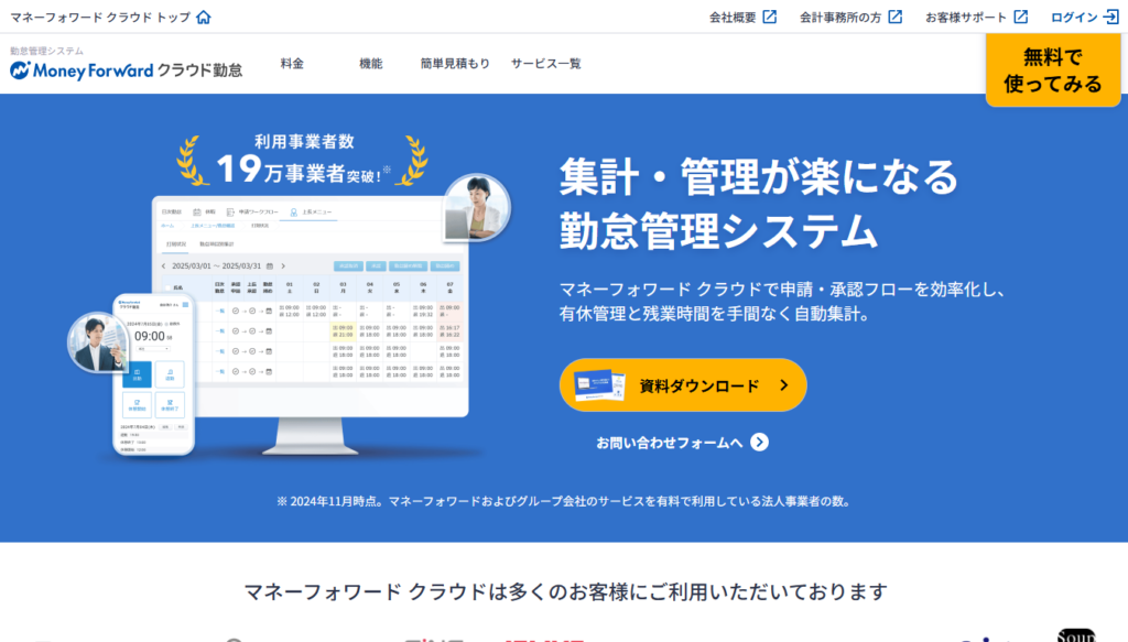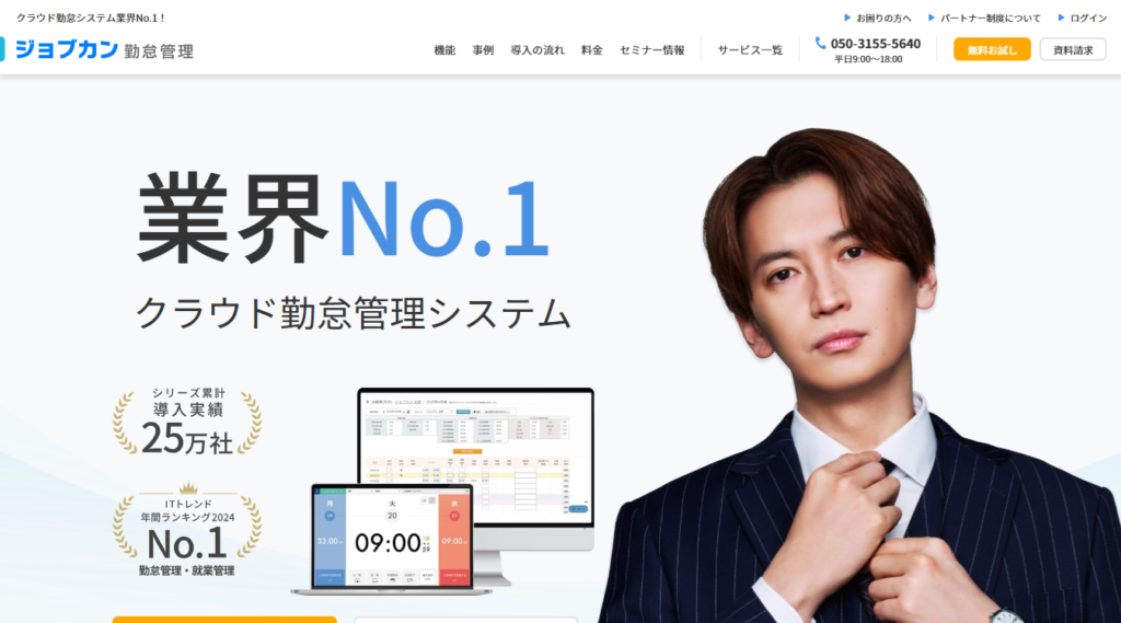 「ジョブカン勤怠管理」は累計25万社以上に導入されている勤怠管理アプリで、認知度においてはNo.1といえます。