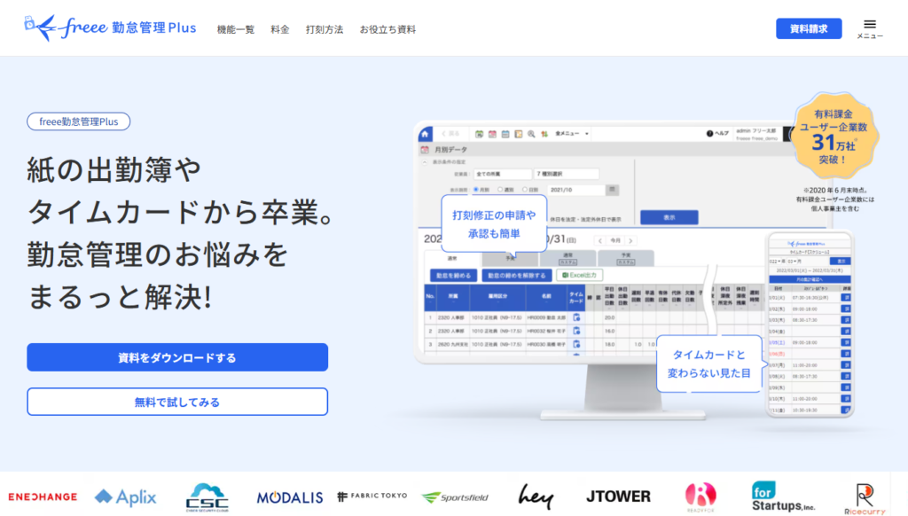 出典:勤怠管理システムのおすすめなら|freee勤怠管理Plus