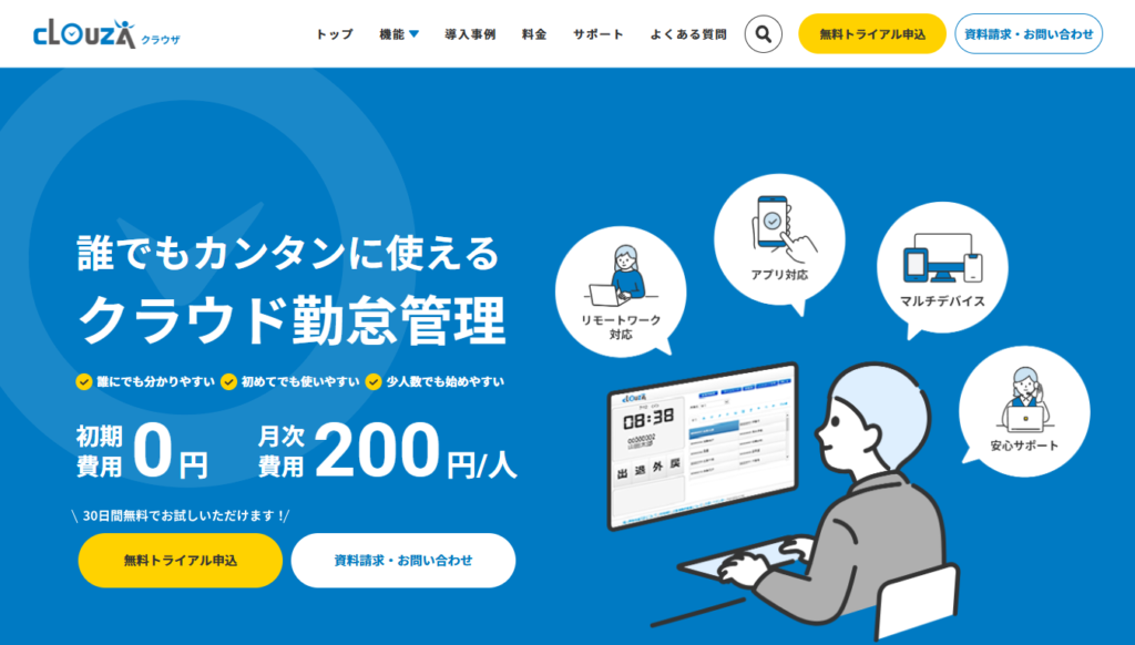 「CLOUZA」は、アマノビジネスソリューションズ株式会社が提供する勤怠管理クラウドサービス。
