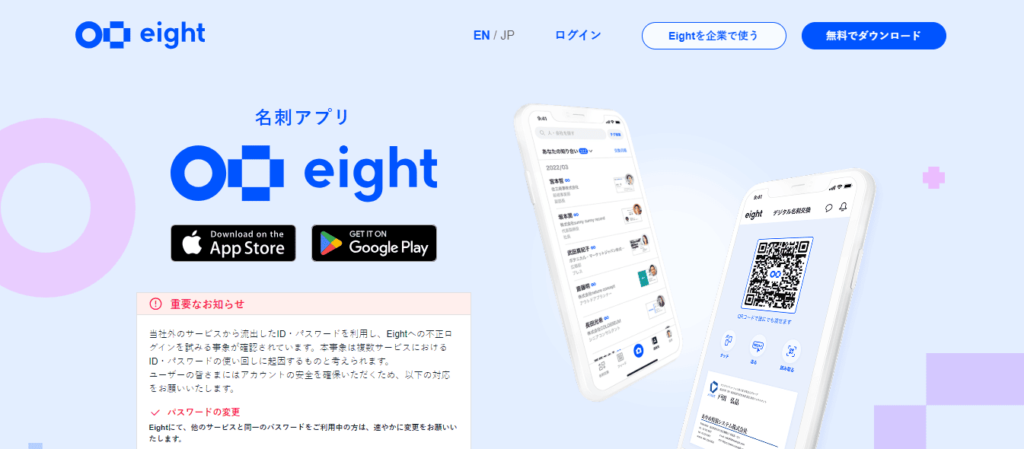 Eightは名刺で繋がりができるビジネスに適したアプリです。気になる方は公式サイトをチェックしてみましょう。