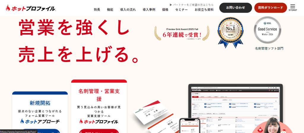 ホットプロファイル要見積もり名刺管理・SFA・MAが一体化。営業を強くする。無料トライアル版あり経済産業省『クラウドセキュリティガイドライン』に準拠。第三者認証取得。