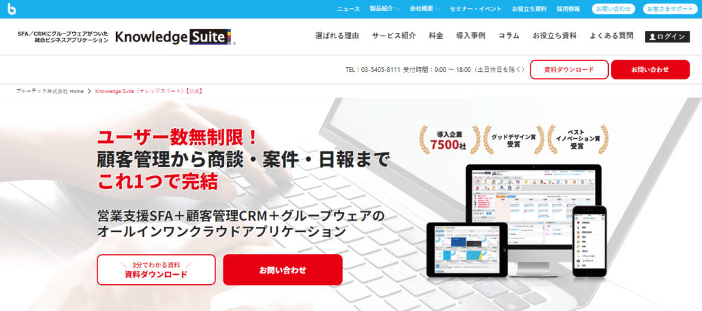 「Knowledge Suite」の最大の特長は、その「コストパフォーマンスの高さ」にあります。名刺管理機能に加え、SFA/CRM、さらにグループウェア機能までがセットになっており、ユーザー数無制限で利用できる料金体系が魅力です。