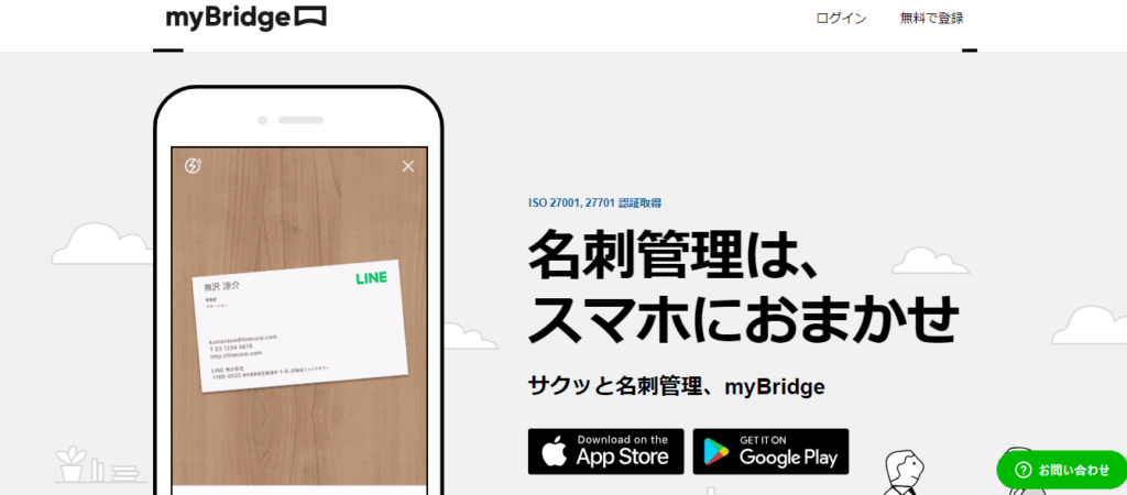 「MyBridge」は、無料で利用できる名刺管理アプリで1日あたりの名刺の枚数や入力項目にも上限はありません。スマホで撮影すれば正確にデータ化できるのはもちろん、社内で名刺を一括管理できる「共有名刺帳」機能も便利です。