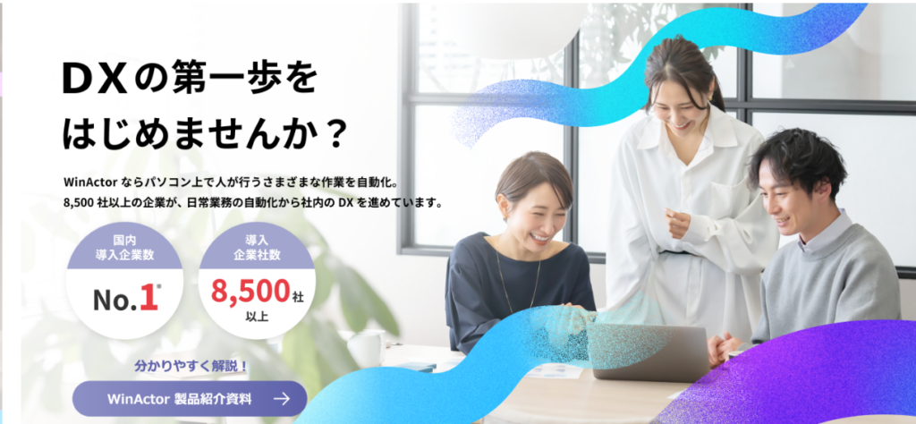 WinActorは、国内導入実績の多いRPAツールで、幅広い業務の自動化に対応しています。既存システムを変更せずに導入できる点が特長で、定型業務の人手削減に貢献します。