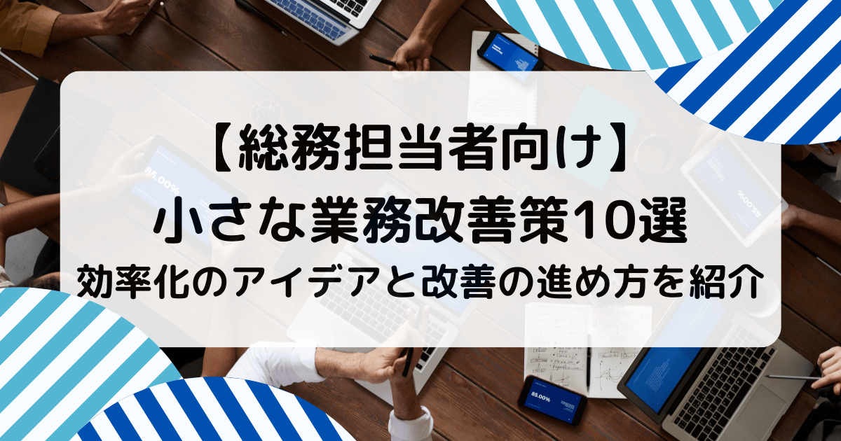 この記事を読むことで、日常業務にすぐ応用できる改善アイデアと、総務部門の業務改善を計画的に進める方法がわかります。