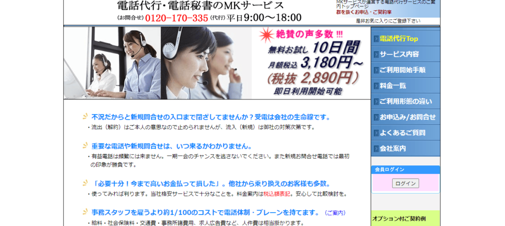 | MKサービス (株式会社ケイズプランニング) | ・インバウンド | 月額2,890円(税込)~ |