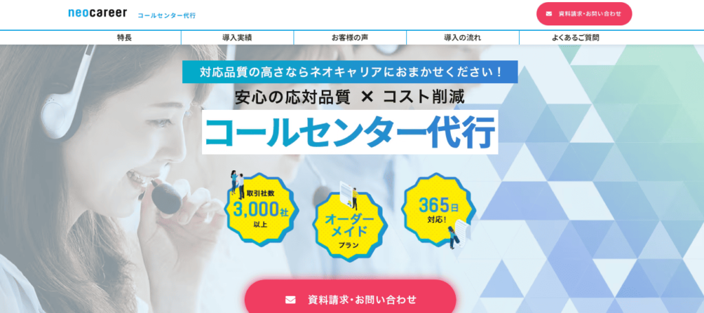 人材事業20年以上の実績と豊富なノウハウをもつネオキャリアは、新規開拓支援やアポイントといったアウトバウンド業務から、データ入力やアルバイト採用代行まで、幅広い業務に対応しています。