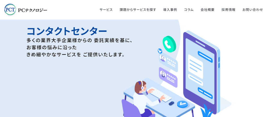 コールセンター代行業務30年の実績があるPCテクノロジーは、メーカーやソフトウェア業界のノウハウが豊富です。
