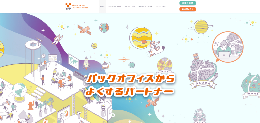 YPPは、経理業務を中心に、営業事務・労務・事務局業務・SNS運用などバックオフィス全体を支援するアウトソーシングサービスです。