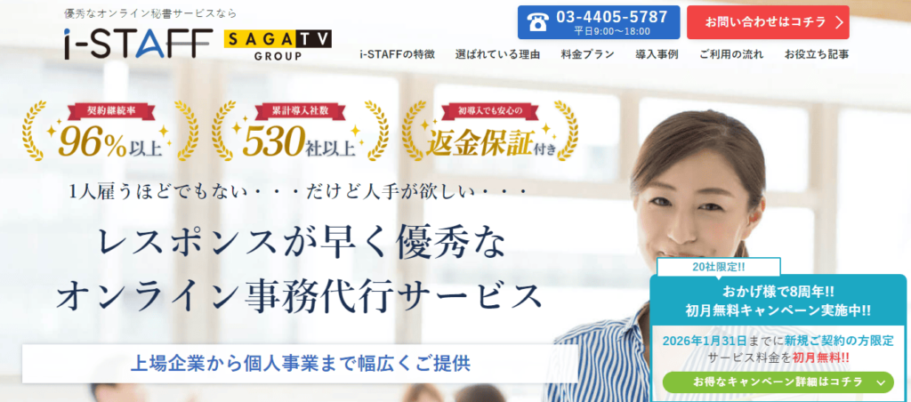 I-STAFF(アイスタッフ)は、秘書・経理・営業サポート・Web運用など、幅広い業務に対応するオンライン秘書サービスです。