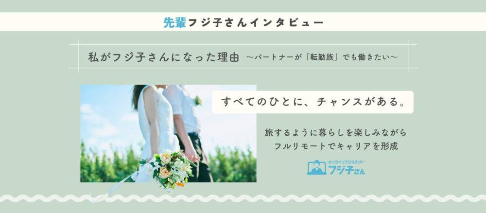転勤族のパートナーと暮らしながらキャリアを継続するため、完全在宅で働ける「フジ子さん」を選択。