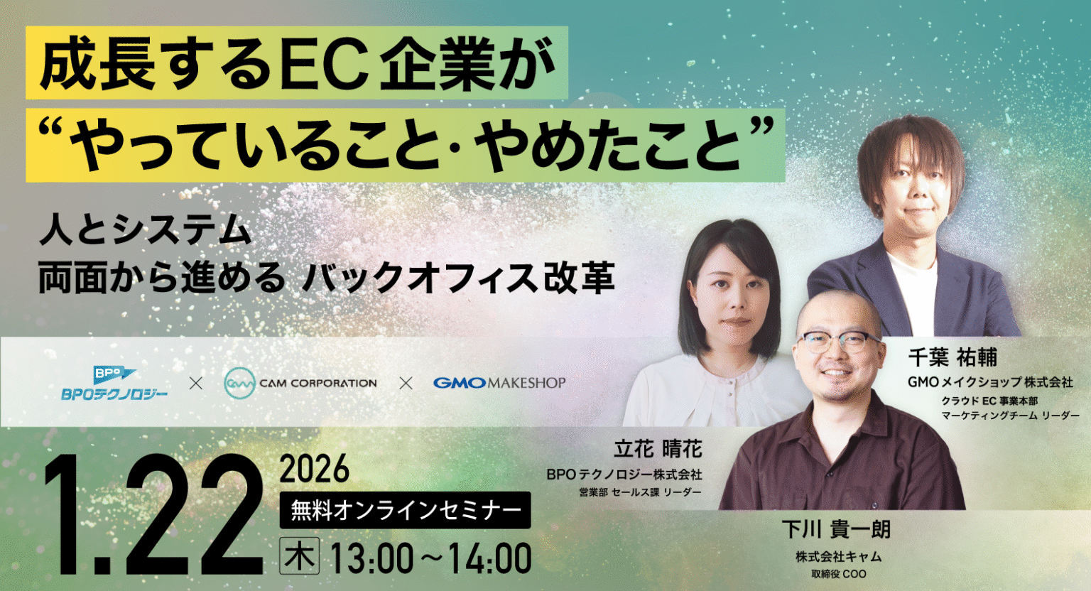 【ウェビナー】1/22成長するEC企業が“やっていること・やめたこと” 〜人とシステム、両面から進めるバックオフィス改革〜